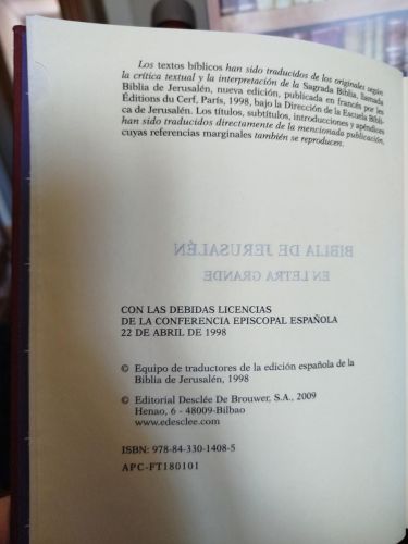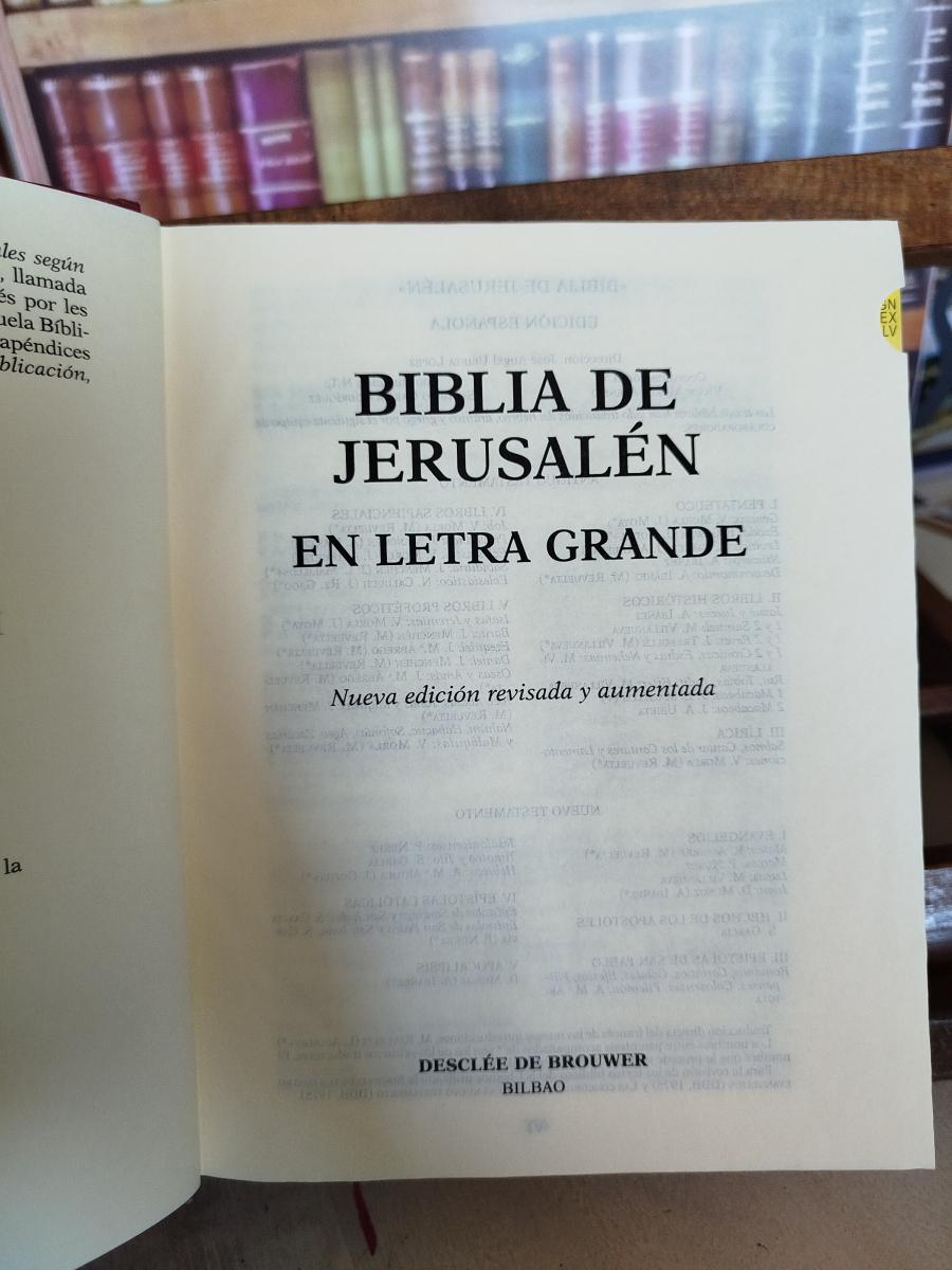 En cubierta: "Nueva Biblia de Jerusalén revisada y aumentada en letra grande"