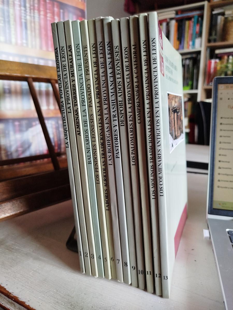 Contiene: León 1. La arquitectura popular leonesa /José Luis Alonso Ponga; León 2. La provincia de León / Luis Pastrana; León 3. Almenas, torres y murallas / Luis Pastrana; León 4. Historia de los balnearios de la provincia de León / Wenceslao Álvarez Oblanca; León 5. Los pendones leoneses: pasado y presente / Alejandro Valderas Alonso; León 6. Labores agrícolas tradicionales en la provincia de León / Antonio Gómez Sal; León 7. Las bodegas en la provincia de León / Santiago Díez Anta; León 8. Pastores y trashumancia en León / M. Rodríguez Pascual y A. Gómez Sal; León 9. Despoblados leoneses / Luis Pastrana; León 10. Los palomares en la provincia de León / Santiago Díez Anta; León 11. Comprender la catedral: aproximación estética a la catedral de León / Jesús Fernández del Hoyo; León 12. Los molinos tradicionales en la provincia de León / Joaquín-Miguel González Alonso; 13. Los antiguos colmenares en la provincia de León / Fidela Pérez Castro.