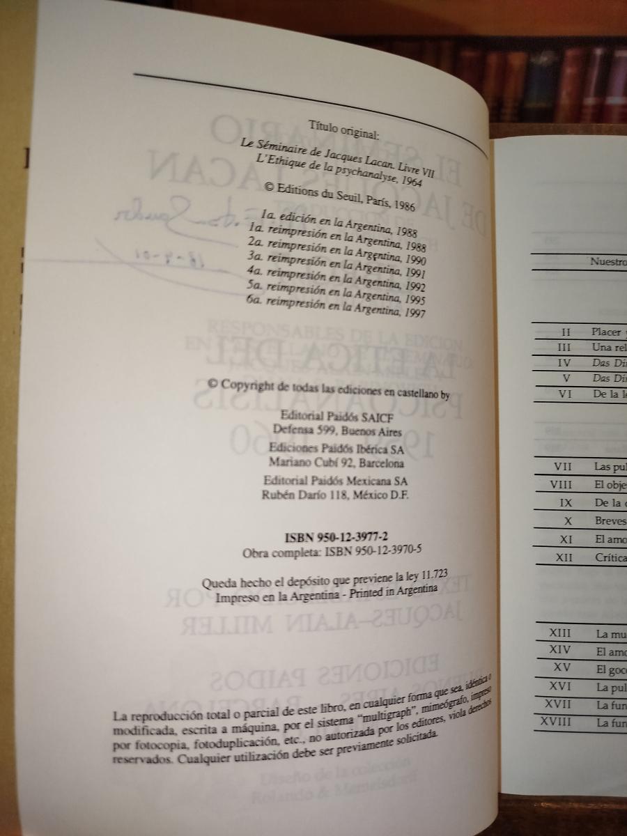 El seminario de Jacques Lacan. Libro 7. La ética del psicoanálisis: 1959-1960