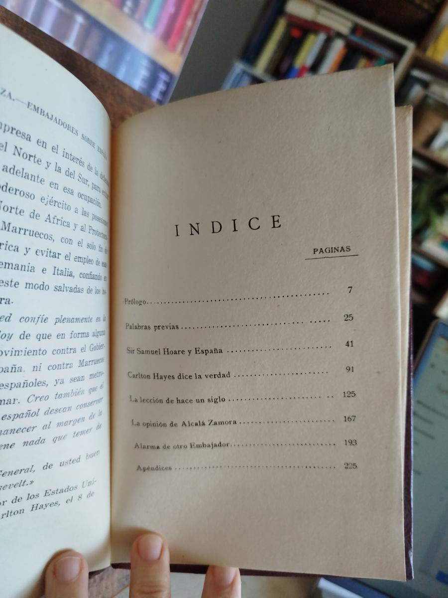 Sumario: Prólogo.--Palabras previas.--Sir Samuel Hoare y España.--Carlton Hayes dice la verdad.--La lección de hace un siglo.--La opinión de Alcalá Zamora.--Alarma de otro Embajador.--Apéndices.
