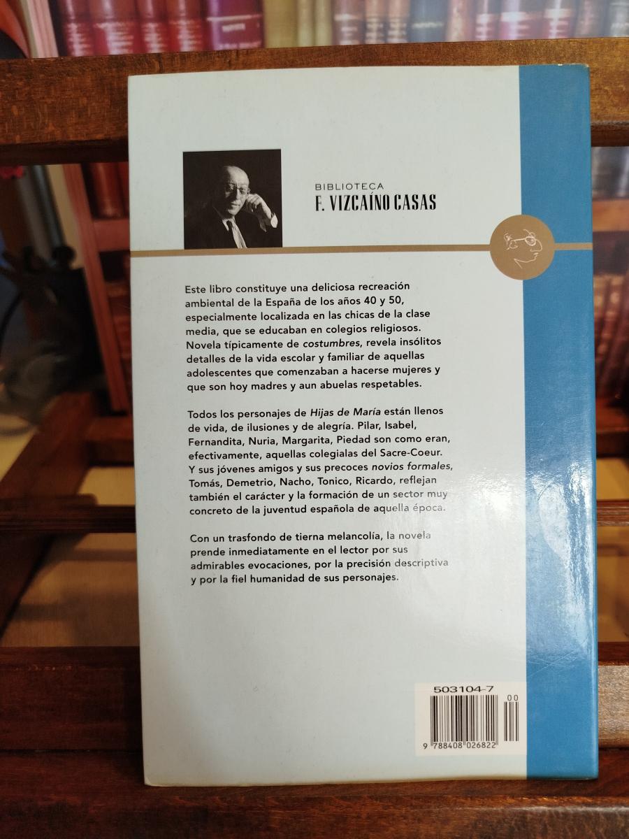 Recreación ambiental de la España de los años 40 y 50, especialmente localizada en las chicas de la clase media, que se educaban en colegios religiosos. Novela típicamente de costumbres, revela insólitos detalles de la vida escolar y familiar de aquellas adolescentes que comenzaban a hacerse mujeres y que son hoy madres y abuelas respetables. Todos los personajes de Hijas de María están llenos de vida, de ilusiones y de alegría. Pilar, Isabel, Fernandita, Nuria, Margarita, Piedad son como eran, efectivamente, aquellas colegialas del Sacre-Coeur. Y sus jóvenes amigos y sus precoces novios formales, Tomás, Demetrio, Nacho, Tonico, Ricardo, reflejan también el carácter y la formación de un sector muy concreto de la juventud española de raquella época.