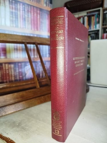 Cartoné en piel granate con encofrados dorados en cubierta y lomo.