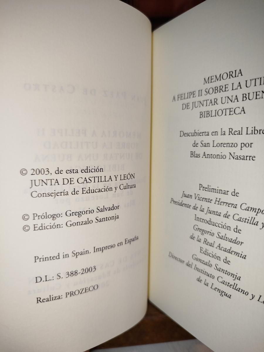 Memoria a Felipe II sobre la utilidad de juntar una buena biblioteca: descubierta en la Real Librería de San Lorenzo por Blas Antonio Nasarre