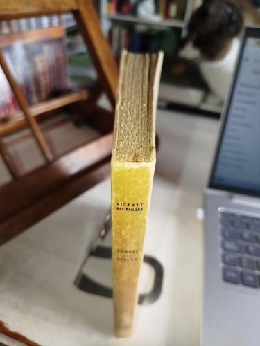 Corte superior in tonso. Foxing en las hojas por el paso del tiempo.