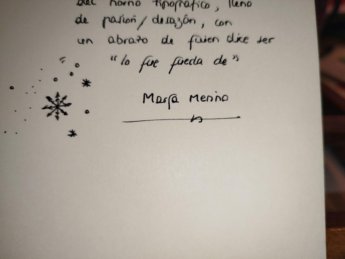 Dedicado por la autora en hoja de respeto.